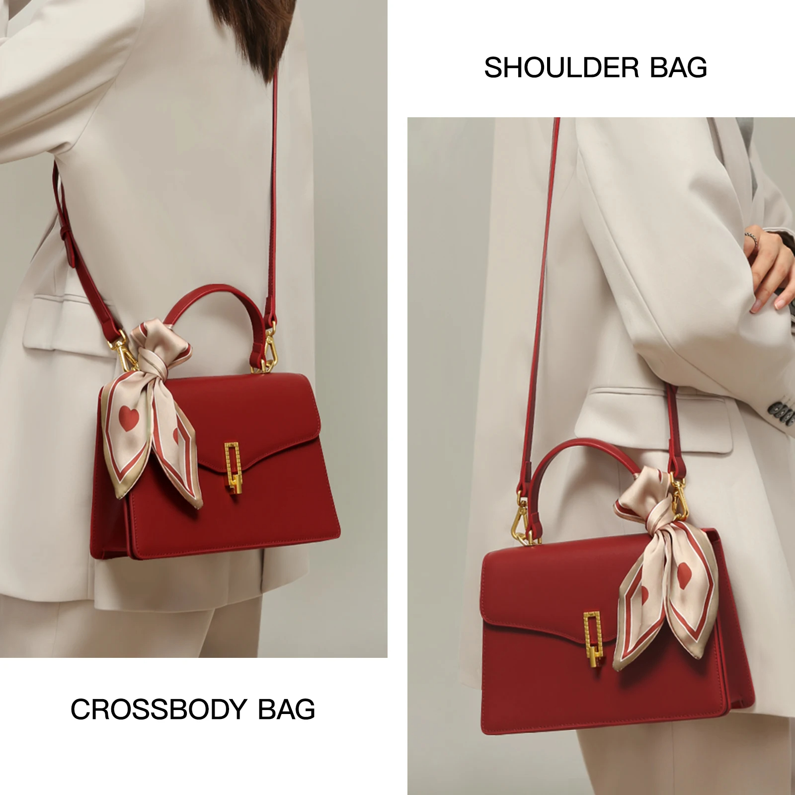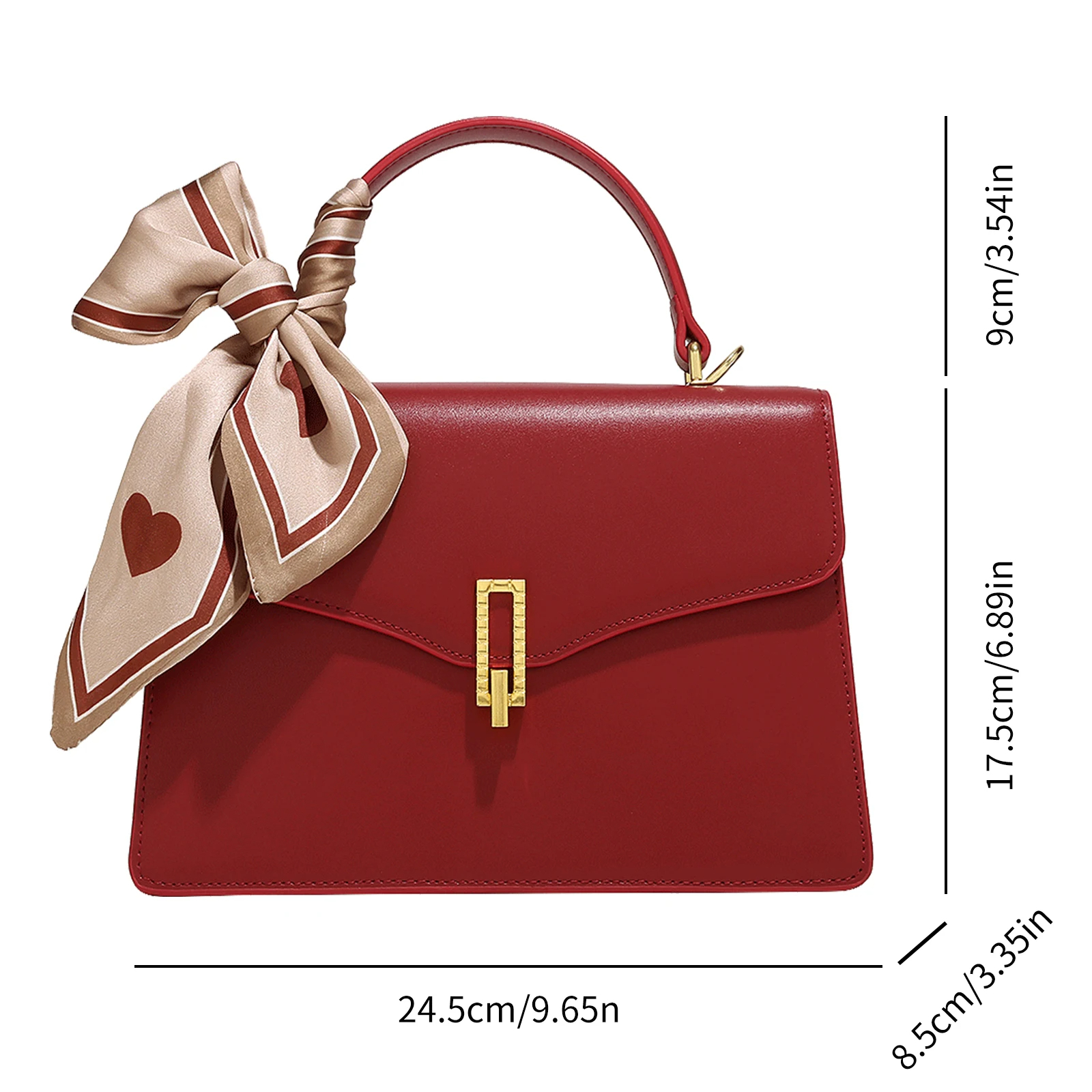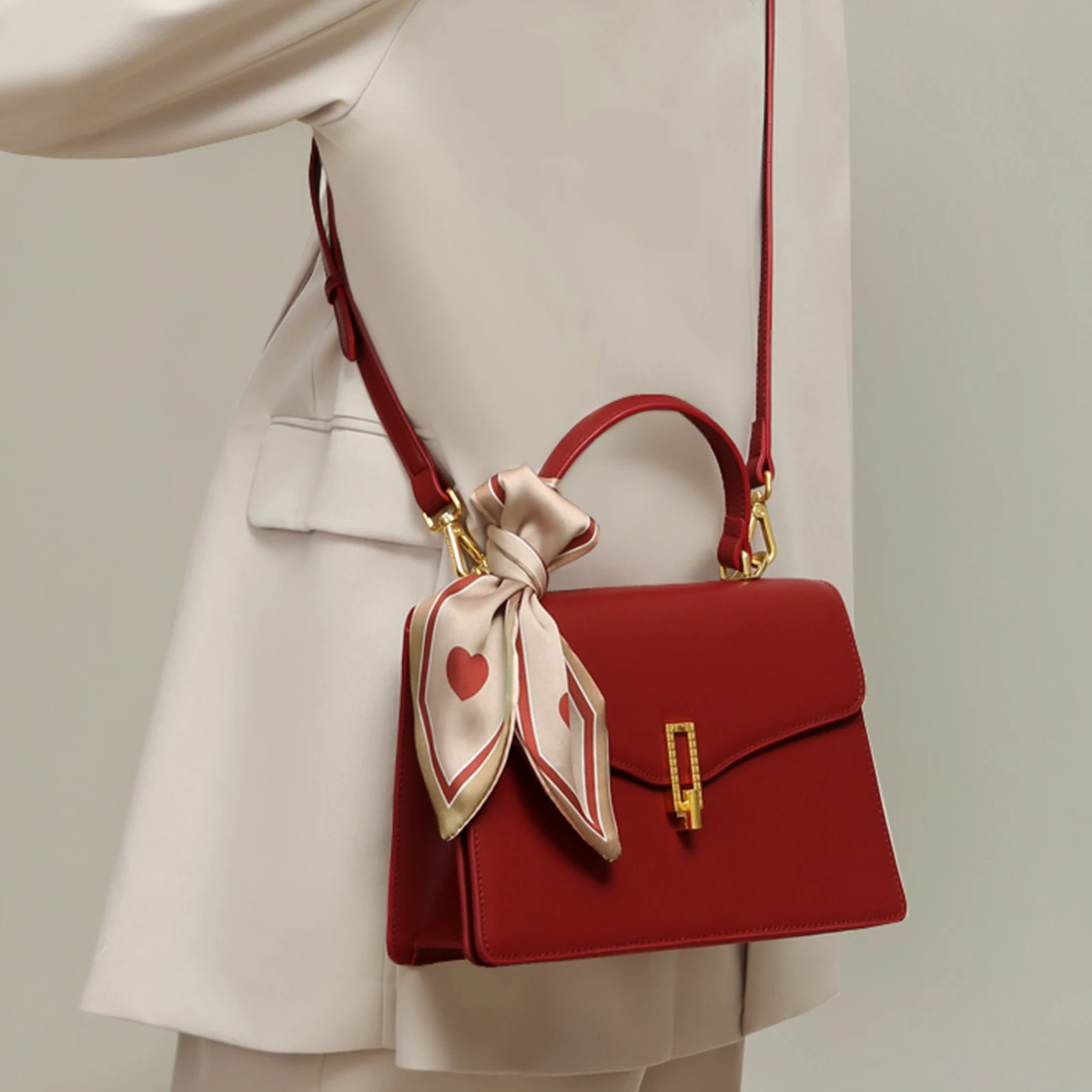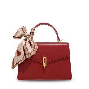 Red Sorbet – Split Leather HandBag Satchel with Scarf Detail